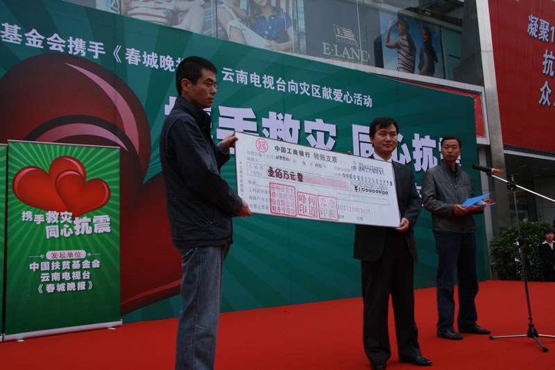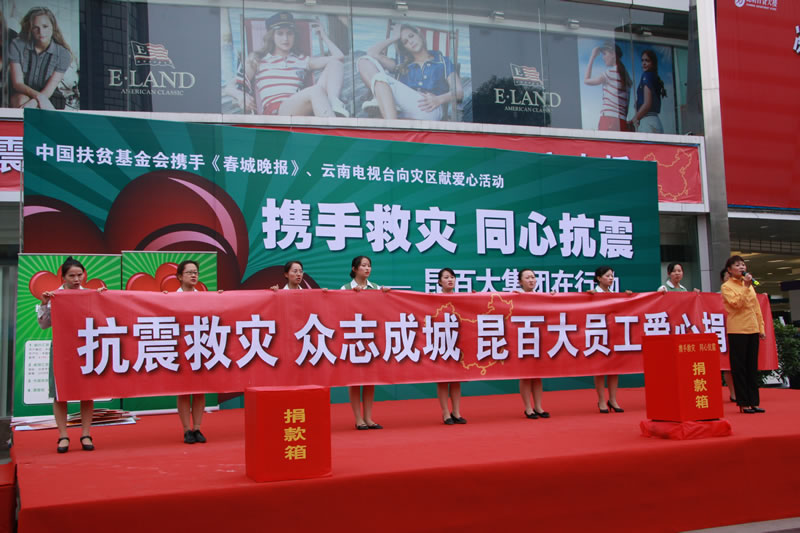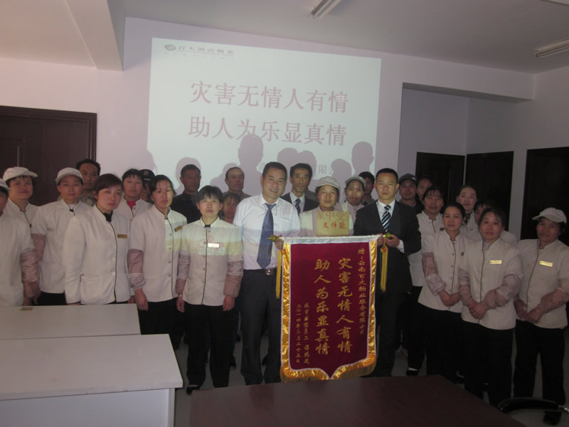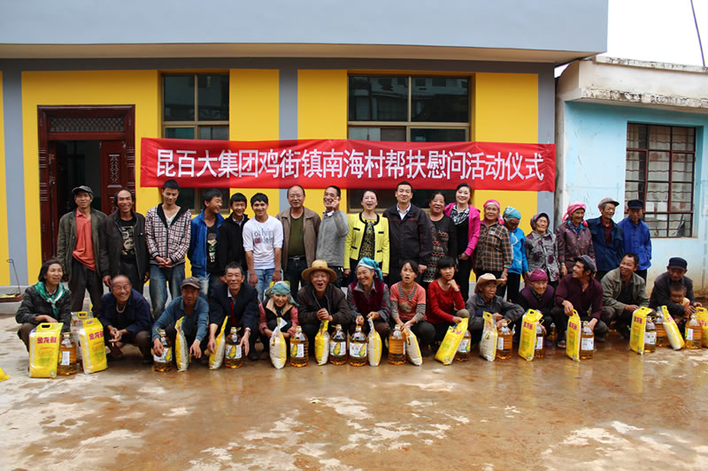 會(huì)上,商務(wù)局副局長(zhǎng)黃焰與昆百大黨委書記、工會(huì)主席張敏為竹山鎮(zhèn)干塘子村委會(huì)送上了壹萬元的扶貧慰問金,村委會(huì)王書記代表村民接受慰問金,并感謝商務(wù)局領(lǐng)導(dǎo)和昆百大企業(yè)的關(guān)心與幫助。昆百大集團(tuán)張敏書記表示:昆百大集團(tuán)作為云南省商貿(mào)業(yè)的第一家上市公司,將在昆明市商務(wù)局的領(lǐng)導(dǎo)下,繼續(xù)在力所能及范圍內(nèi)承擔(dān)起應(yīng)盡的社會(huì)責(zé)任。